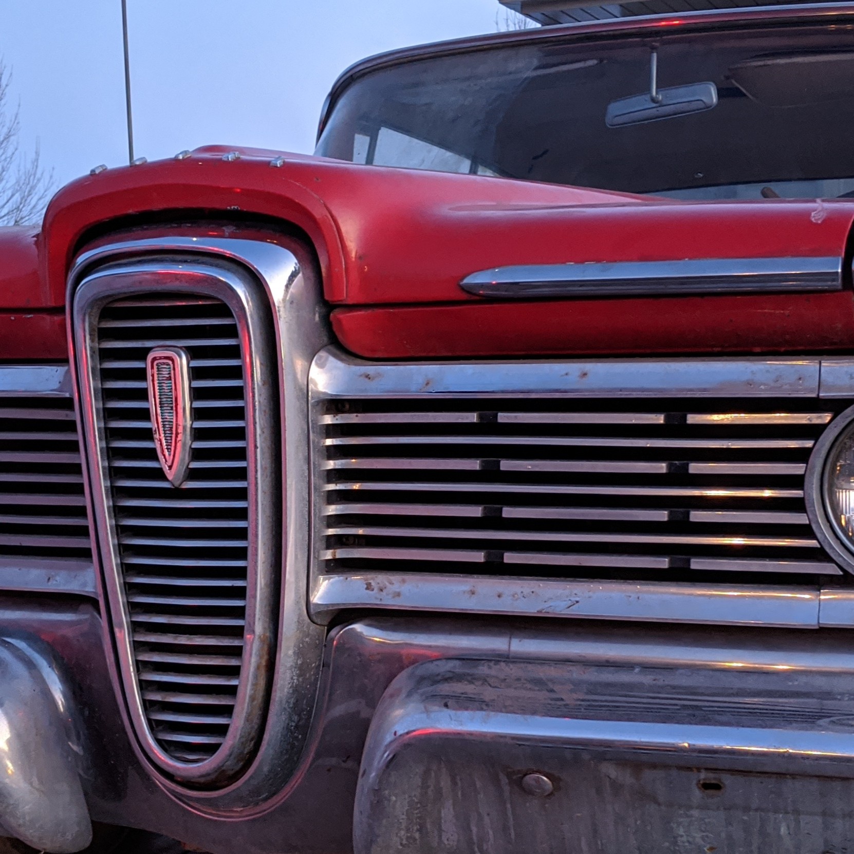 Eventually I decided I wanted something that would allow me to "fit in" a bit more. The search started for an old pickup, but as fate would have it, on a trip to see my financial planner, I stumbled across my first Edsel. Only a few days later, I brought home "Eddie," a 1959 (the middle year of Edsel's production) Edsel Ranger. I began bringing him to shows, and he was a hit! Even won Best in Show two years! (I think the judges really liked his uniqueness.) Eddie eventually led me to the International Edsel Club and the Edsel Owners Club, and our extended family of Edsel people, which I am extremely grateful for. (Not to mention connections to additional Edsels!)